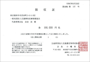 公益財団法人 交通遺児等育成基金様 寄付金